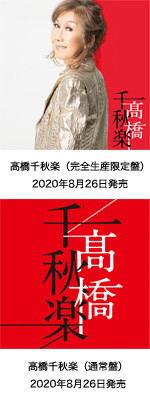 「高橋千秋楽」トレイラー映像公開のお知らせ8月26日にリリースするのオールタイム・ベストアルバム「高橋千秋楽」のDISC-1(1973-1980)に収録されている楽曲をダイジェストで紹介した トレイラー(予告)映像第1弾が公開されました。 https://youtu.be/ko_JU3G6JZw 1973年のレコードデビューから1980年までに発表した作品の中から セレクトされた19曲で構成されるDISC-1では、今作のために新録された ペドロ&カプリシャス時代の名曲「わが町は・・・」「メリーゴーラウンド」 「恋人たちの時間」、40年ぶりに音源化されることになった「夢ゆらり」 「誕生日(バースディ)」なども視聴できます。 DISC-2(1981-1990)に収録されている楽曲をダイジェストで紹介した トレイラー(予告)映像第2弾が公開されました。 https://youtu.be/oKjumI3OlgI 「for you...」「桃色吐息」「グランパ」など、80年代の楽曲が収録されたDISC-2。 DISC-3(1991-2000)に収録されている楽曲をダイジェストで紹介した トレイラー(予告)映像第3弾が公開されました。 https://youtu.be/Q-oKcPMQ2mg 「はがゆい唇」「遥かな人へ」「ごめんね・・・」など、90年代の楽曲が収録されたDISC-3。 DISC-4(2001-2020)に収録されている楽曲をダイジェストで紹介した トレイラー(予告)映像第4弾が公開されました。 https://youtu.be/dE12nV_q9OQ 「say my name」「淡き恋人」などのヒット曲から、今ある想いをリアルに綴った書き下ろし新曲 「やさしい夢」「愛する人へのメッセージ」まで、近年20年の集大成となる全16曲が収録されたDISC-4。 |