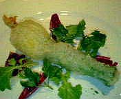 左)「ズッキーニの花のモッツアレラチーズ詰めフリット」