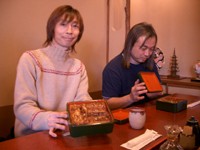 さてさて今回の舞台は‥‥小道具屋さんへ行って机や椅子を調達、ランプとオルゴールはトオル氏の自前です。演出にも力が入ります。衣裳も江口さん松下さん伊藤さんは黒の同素材のシャツを着こなして。